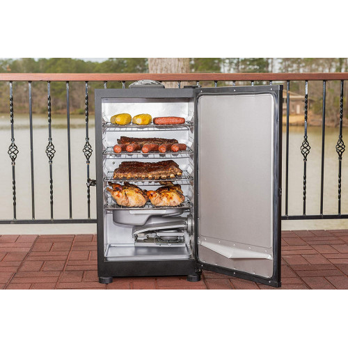 El ahumador eléctrico digital Masterbuilt MES 130B es perfecto para principiantes o profesionales. Obtendrás resultados listos para la competencia en tu propio patio, sin la molestia de carbón o propano. Simplemente conecte este ahumador, configura los controles digitales y hace el trabajo. El cargador patentado lateral de madera te permite experimentar con sabor sin abrir la puerta del ahumador. Cuatro estantes cromados proporcionan un montón de espacio para fumar hasta 6 pollos, 2 pavos, 4 estantes de costillas o 4 botones de cerdo. Domina el arte de fumar con Masterbuilt.