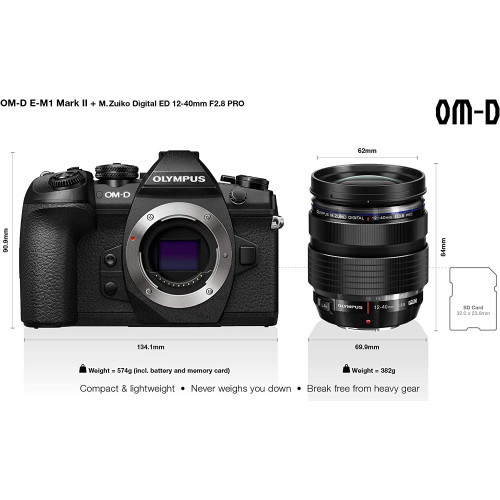 La E-M1 Mark II no se puede comparar con ninguna otra cámara OM-D anterior. Un centro neurálgico de tecnología ofrece la experiencia fotográfica que anhelan todos los profesionales: un avanzado sistema de AF con un disparo secuencial a alta velocidad (Enfoque automático continuo (C-AF) de hasta 18 fps y Enfoque automático sencillo (S-AF) de hasta 60 fps) y la innovadora opción Pro Capture para grabar sin interrupciones. Un cuerpo ligero y resistente a la intemperie y una batería de alta duración. Un sensor Live MOS de 20 M y el procesador TruePic VIII para alcanzar metas en calidad de imagen. Un sueño hecho realidad.