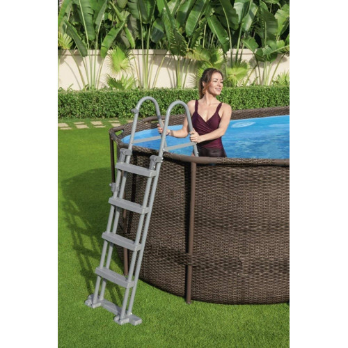 Bestway Piscina Desmontable Tubular Power Steel Oval Diseño Ratán 549x274x122 cm con Depuradora Cartucho 5.678 L/H con Cobertor y Escalera