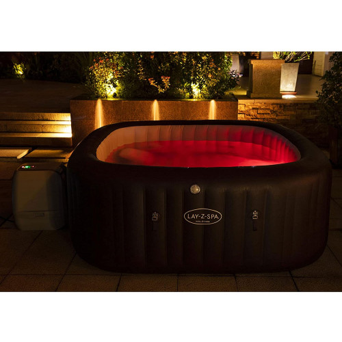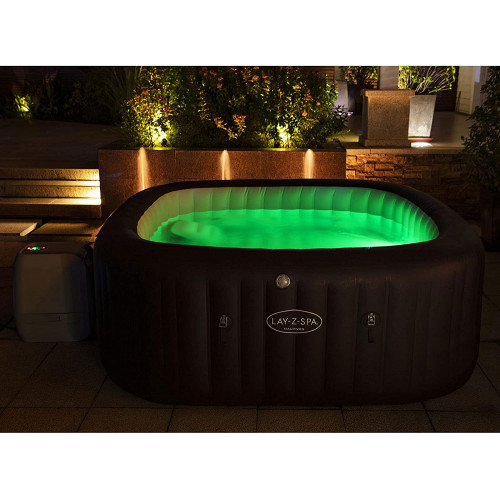 - Incluye: Jacuzzi inflable Lay-Z-Spa Maldives HydroJet Pro de Bestway, dosificador químico, 2 luces LED, cartucho de filtro y parche; material: TriTech, medidas: 201x201x80 cm, marrón