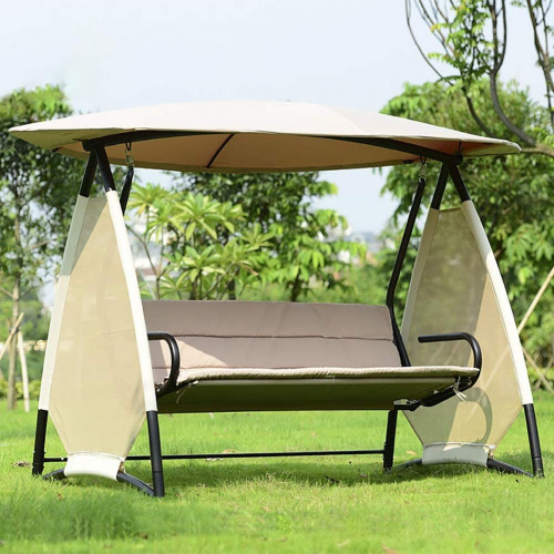 Columpio Balancín Jardín Banco de 3 plazas para Columpios de jardín con Techo Desmontable