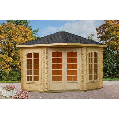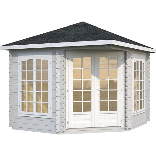 • Caseta de madera hecha de abeto nórdico con 5 años de garantía y certificación FSC que asegura que los bosques son gestionados responsablemente