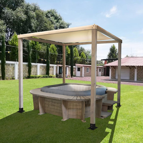 - Spa hinchable con panelado de madera de pino en tono gris claro formado por el modelo Lay-Z-Spa Hawaii Hydrojet Pro para hasta 6 personas