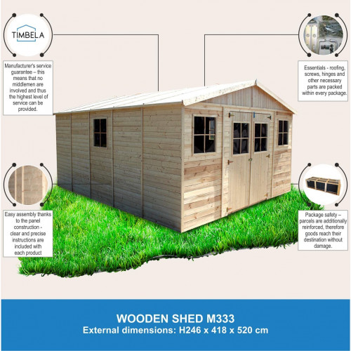 - ROBUSTOS PANELES DE REVESTIMIENTO. Revestimiento de madera de abeto y pino de alta calidad traslapado con paneles de 17mm de espesor. Este cobertizo está diseñado para durar y viene con una garantía de fabricante de 2 años. Con el cuidado y mantenimiento adecuados, ofrecerá una vida de uso. (*Debido a las propiedades naturales de la madera, el tamaño puede variar de 1 a 2 mm.)