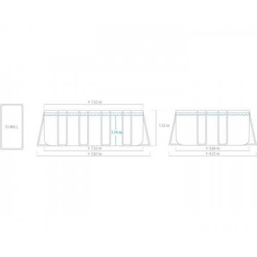 La Intex Ultra XTR Frame 732 x 366 es fácil de montar con 2-3 personas en tan solo 60 minutos. Extiende la lona de la piscina sobre una superficie dura y plana. Monta la estructura como se describe en el manual. Llena la piscina con una pequeña capa de agua (2-5 centímetros). ¿Quedan arrugas en la lona del suelo? Entonces estira la lona con cuidado. A continuación, llena de agua la piscina en un 90% (hasta la línea de llenado blanca, que separa el color interno del externo del liner). Gracias a la presión del agua, los tubos de las piscinas rectangulares se enderezan automáticamente.