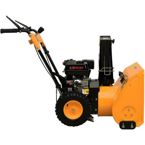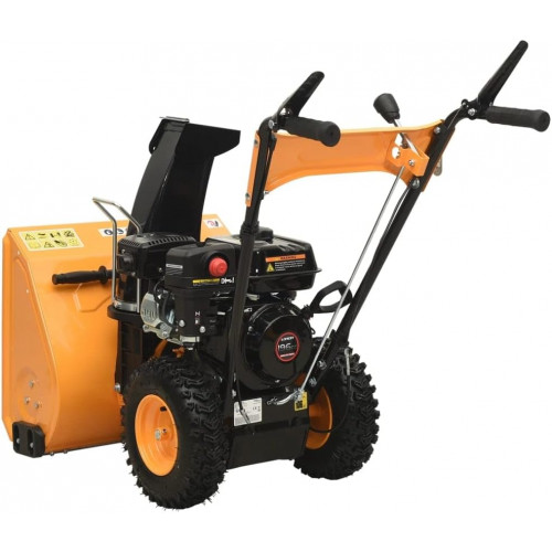 Lanzador de nieve para césped y jardín de 6.5 HP amarillo y negro, para hogar y jardín, este potente lanzador de nieve de gasolina de 6.5 HP ha sido diseñado para eliminar fácilmente la nieve de calzadas, aceras y otras superficies pavimentadas en propiedades residenciales o comerciales. El motor de 1 cilindro refrigerado por aire funciona sin problemas y ha sido diseñado para soportar bajas temperaturas y para ser económico con combustible incluso a plena potencia, por lo que puede hacer frente incluso a las capas de nieve más densas. Este quitanieves es increíblemente fácil de usar y mantener. Se puede iniciar sin esfuerzo y de forma fiable con el arrancador de retroceso incluso en el clima más frío para trabajar a través de fuertes nevadas. Las ruedas están accionadas, por lo que se conduce sin esfuerzo. La máquina tiene una operación de dos etapas: durante la primera etapa, la nieve y el hielo se palean a través de la robusta hoja de barrena y se trituran; durante la segunda etapa son expulsados a través del conducto de descarga por un impulsor, por lo que la nieve se dispersa uniformemente. Su distancia de lanzamiento es de 11 m, lo que es muy útil para eliminar nieve pesada.