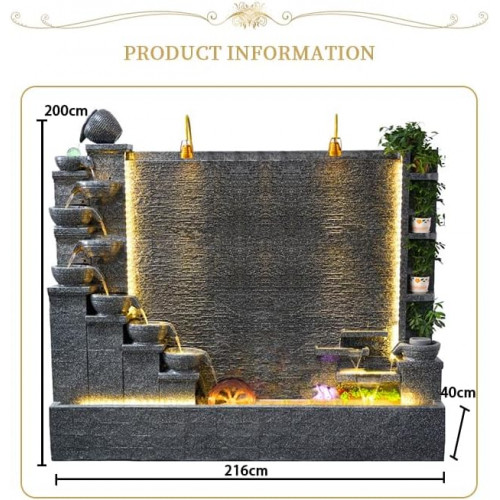 Hecho de cemento duradero, se puede utilizar en interiores y exteriores, los focos LED aportan un ambiente más maravilloso a la fuente. Tu estado de ánimo se mueve con el agua de la fuente. Puedes sentarte en el patio, meditar y relajarte mientras escuchas el sonido del agua.