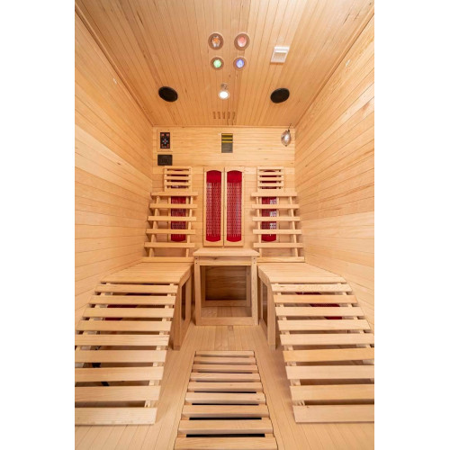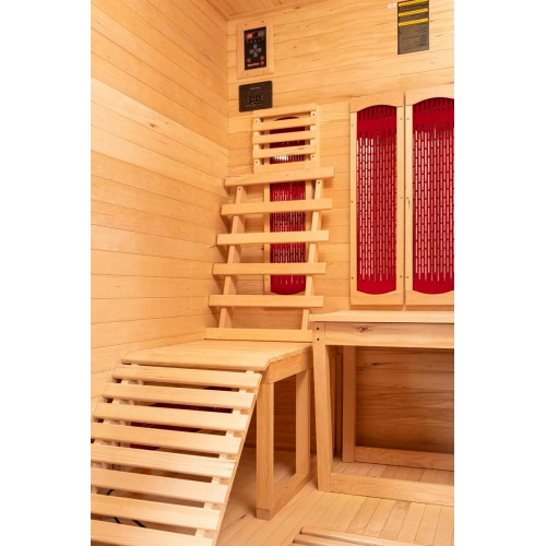 - Nuestra cabina de infrarrojos es especialmente eficiente de energía y ofrece una opción libre de temperatura de 20 a 65 grados. Además, hay un control digital interior, un control de temperatura con pantalla digital, circuitos de emisión seguros por separado, aromaterapia, una lámpara de lectura, iluminación exterior, una válvula de ventilación, limpieza por ozono y mucho más.