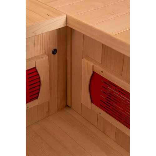 - Material de alta calidad: la radiación de calor profundo penetra profundamente en la piel y promueve la circulación sanguínea, lo que resulta en una mejor relajación y un mayor bienestar. La madera de cicuta es duradera y resistente.