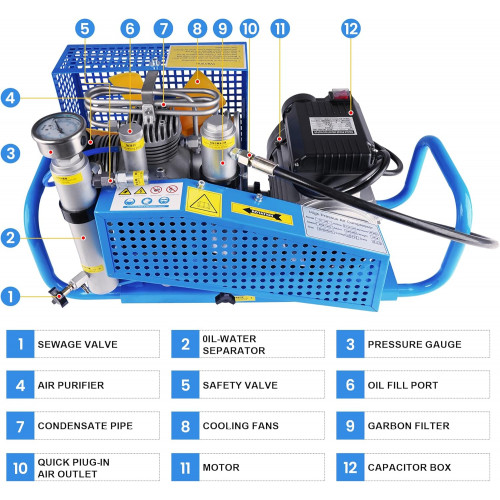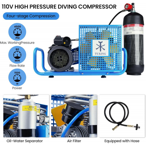 TUXING Compresor de aire Pcp, 4500 psi/300 bar, compresor de aire de botella de buceo, compresor de agua de alta presión para botellas de buceo/PCP rifle/pistola de aire de paintball.