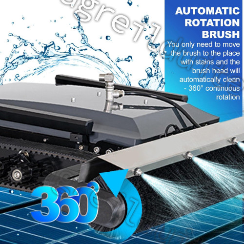 • 【MODOS DE LIMPIEZA DOBLES PARA MAYOR VERSATILIDAD】- Cambie fácilmente entre los modos seco y húmedo: use el cepillado en seco para eliminar rápidamente el polvo o active la función de alimentación de agua con el cepillo de limpieza eléctrico giratorio para la suciedad más difícil. Limpie a fondo cada rincón del panel solar para asegurarse de que no se le escape nada.