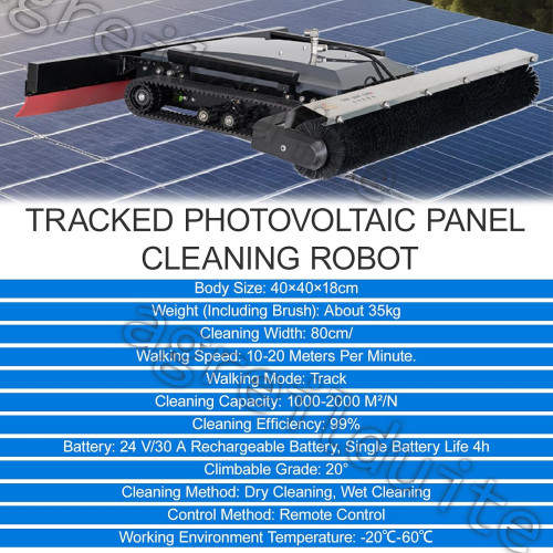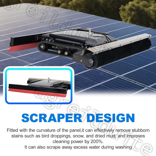 • 【Control remoto】- No necesita subirse al panel solar para la limpieza manual; simplemente controle el control remoto para avanzar y retroceder fácilmente. Está equipado con una manguera de agua de 100 m y una batería recargable (no necesita conexión a una fuente de alimentación). Solo necesita una persona para completar la limpieza de paneles fotovoltaicos a gran escala, lo que mejora significativamente la eficiencia del trabajo hasta en un 80%.