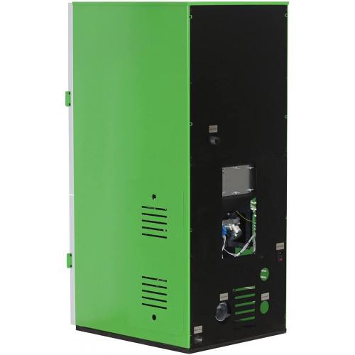 El Robin Wood EcoPellet es una caldera de pellet de última generación con limpieza automática de quemadores. Un bajo consumo y un alto grado de eficiencia caracterizan a esta caldera. Con una eficiencia de > 93 %, alcanza la clase de eficiencia energética A++. Su diseño compacto permite la instalación incluso en espacios pequeños. El Robin Wood EcoPellet está diseñado para proporcionar calidez a toda la casa. Equipado con una moderna regulación de fuego, esta caldera te garantiza suficiente comodidad durante cualquier época del año. Equipado con un conector para un módulo WiFi, conectado a una aplicación adecuada, puedes acceder a la caldera en cualquier momento a través de tu smartphone y adaptarlo a tus necesidades. Además, la caldera de pellets se puede combinar con otros productores de calor. Además, dispone de una limpieza automática del quemador. ¿Quieres calentar tu casa además con energía solar o con una bomba de calor? Con un sistema multibúfer puede aprovechar todas las fuentes de energía imaginables. Con un Robin Wood EcoPellet permanecerá flexible y puedes equipar tu sistema de calefacción según tus ideas. ✓ BAFA transportable en Alemania. Véase bafa.de æ le ayudaremos a llenar la solicitud BAFA. Detalles técnicos: Potencia: 30 kW. Altura: 1650 mm. Ancho: 626 mm. Profundidad: 788 mm. Capacidad del depósito de pelleta: 105 kg. Conector de aire fresco: 60 mm de diámetro. Tubo de humo. Diámetro: 80 mm. Peso: 245 kg. Tipo de combustible: Ø6-Ø8 mm. Pellet de madera. Hoguera: 12 Pa. Consumo de energía: 60/310 W. Conexión eléctrica: 230/50 V/Hz. Contenido del revestimiento de agua: 65 litros. Presión de funcionamiento: 0,5-2,0 bar. Temperatura ambiente posible: En funcionamiento 5 – 40 °C, humedad a 30 °C. Temperatura ambiente: 85 %. Eficiencia > 93 %. Emisiones de CO: <300 mg/m3. Temperatura del humo: 147 °C. Máx. Temperatura del agua: 90 °C. Flujo de gas de escape en: sí. Potencia nominal: 17,80 g/s. Potencia reducida: 6,01 g/s. Temperatura del humo: 147 °C.