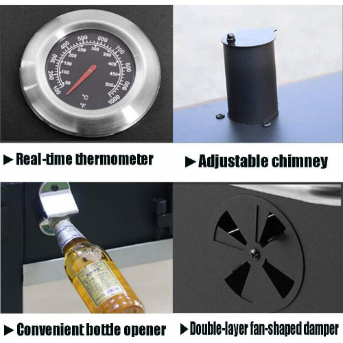controlar fácilmente la temperatura interior de la parrilla con el incorporado en la tapa del termómetro y saber exactamente cuándo agregar más carbón para que su barbacoa dura hasta la noche.
