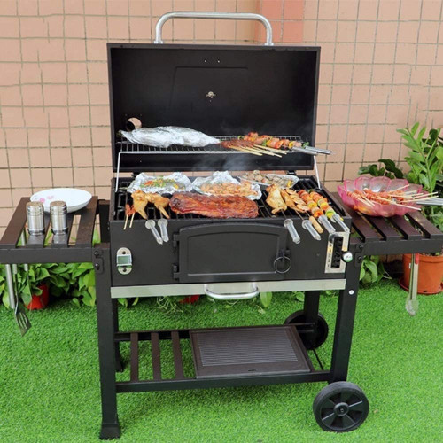La parrilla se puede inclinar hacia un lado y llevó a cabo, por lo que es especialmente útil y conveniente.Ya sea en su patio o balcón - Esta parrilla carrito corta una figura bien en todas partes.