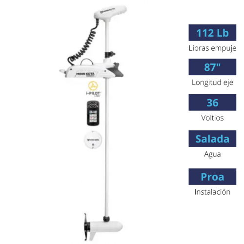 - Código de Producto: Motor Minn Kota Riptide i-Pilot Link GPS 87″ 112lbs 36V