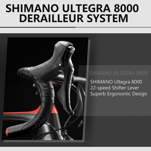 - con SHIMANO Ultegra Group Set -Ultegra 8000 2 * 11 velocidades con palanca de cambio, desviador delantero, desviador trasero, freno en V, bielas 50-34T * 170 mm y rueda libre 11-28T - Le permite comenzar y operar su viaje de manera efectiva, cambios suaves y duradero.
