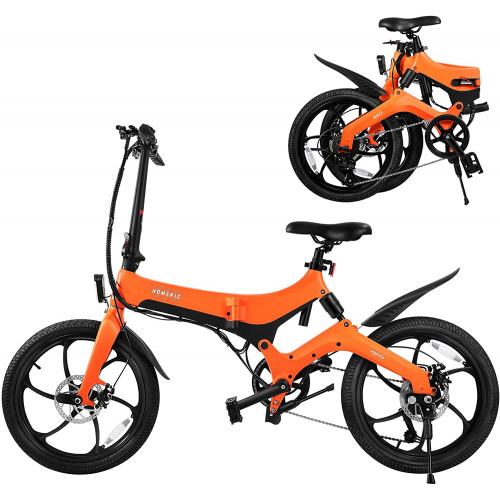 VORCOOL Bicicleta Eléctrica 250W Plegable Mini E- Bike Pedec 3 Modos Frenos Delanteros Y Traseros Bicicleta Híbrida de Ciudad Bicicleta (Naranja)
