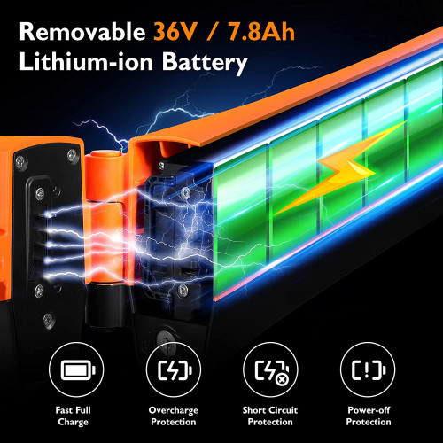 - Larga duración de la batería: batería de litio de 36V 7. 8Ah, motor incorporado sin escobillas de 250W, máximo puede alcanzar hasta 25 km/ h por debajo del alto. Y su hasta 50 km en una sola carga.