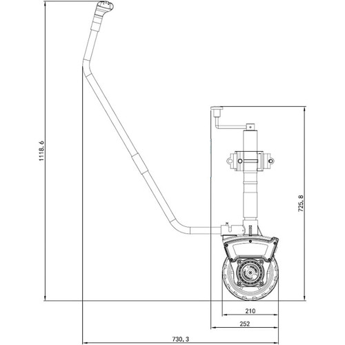 Con un enorme motor de 500 W inigualable por otros competidores, la rueda jockey es capaz de soportar una carga máxima del vehículo de 2722 kg.