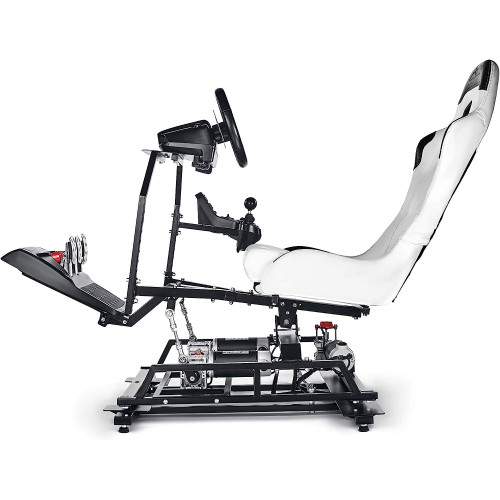 A diferencia de la competencia, no solo se mueve el asiento, sino toda la plataforma: incluido :volante, joystick, pedal, sillon viene completo como sale en la foto.