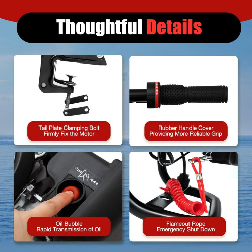 - SEGURIDAD Y PROTECCIÓN: El confiable sistema de encendido TCI para un arranque rápido y seguro del motor, los pasadores de ajuste de inclinación suspendidos y las placas antivórtices reducen la inclinación y los vórtices para garantizar un funcionamiento suave. Los eficientes disipadores de calor y la protección contra sobrecalentamiento te permitirán navegar y disfrutar del viaje.