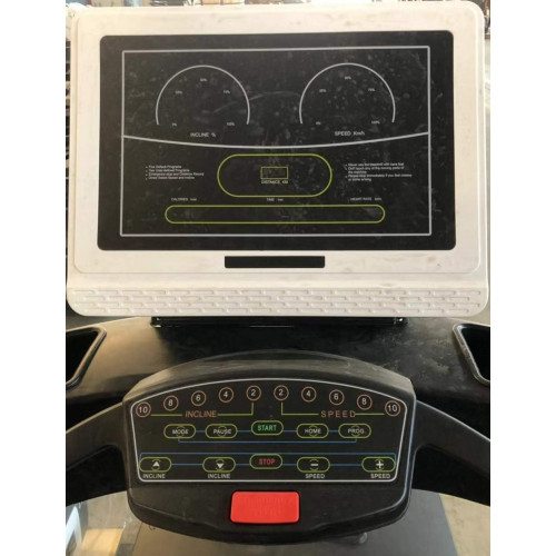 Rango de velocidad: 1.0-20.0 (km / h) Rango de inclinación: 0-15 % Peso máximo del usuario: 180kg Dimensiones y peso: Largo: 2250 mm Ancho: 1010 mm Alto: 1830 mm Superficie de carrera:1660 * 600mm Banda: 590mm Peso neto: 258 kg Peso embalada: 350 Kg.