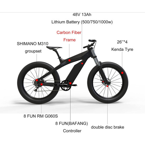 Tamaño:1000W | Color:48vLa bicicleta eléctrica combina perfectamente la adaptabilidad incomparable a las condiciones de ciclismo complejas con una comodidad excepcional. El marco ligero de la fibra de carbono aumenta la fuerza mientras lo hace lo más ligero posible. La capacidad de la batería y la potencia del motor 750 / 1000W, se pueden garantizar una gama individual de 50 millas y se puede garantizar una capacidad confiable. Los neumáticos de las grasas de 26 pulgadas proporcionan un tremendo agarre y estabilidad mecánica. No es más dudas de que es la bicicleta eléctrica más profesional y rentable en todo terreno en el mundo.