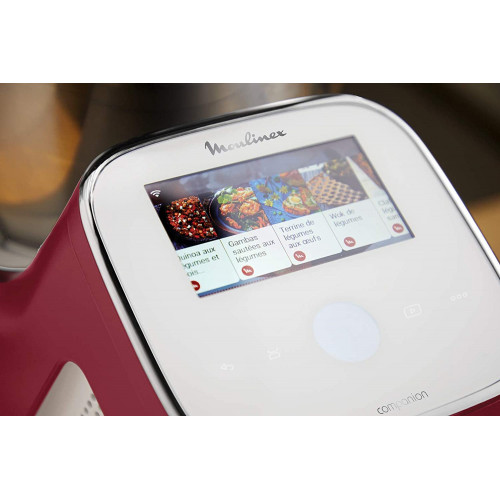 - Robot conectado por WiFi que permite crear tus recetarios y puedes acceder a ellos a través de la pantalla táctil de 4.3 pulgadas de tu i-Companion Touch XL; mediante la App Companion de Moulinex puedes organizar tus menús fácilmente