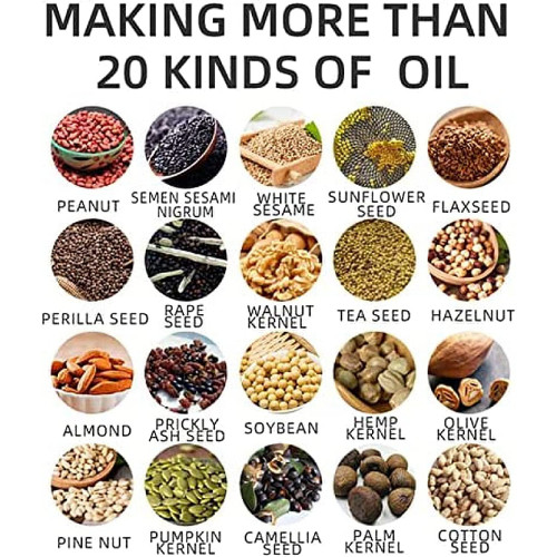 [SE PUEDE EXPRIMIR UNA VARIEDAD DE MATERIALES]: Soporte para exprimir más de 30 tipos de semillas de plantas, incluidas almendras, linaza, cacahuetes, aceitunas, semillas de albahaca, soja, nueces, sésamo blanco/negro, coco, aguacate, ricino, etc. Diferentes aceites comestibles contienen diferentes nutrientes.