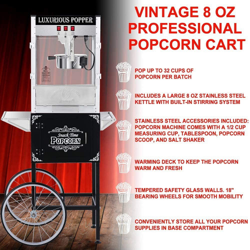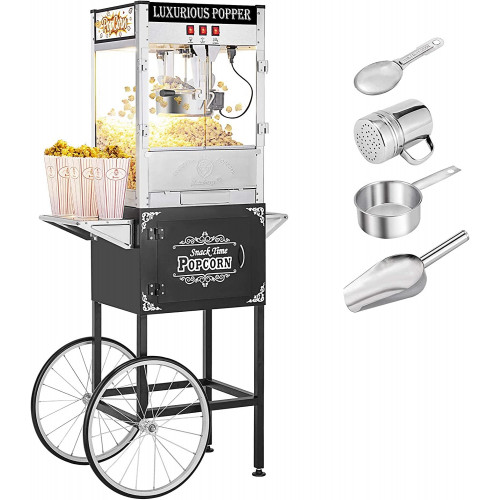 gt3-DL Útil Puerta Doble Gran Capacidad Retro Palomitas Máquina Con Carrito Completo Máquina Negro