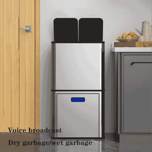 Esta es una lata de basura que habla, con recordatorios de doble voz cuando se abre la tapa, la clasificación de basura, por lo que puede tener un ambiente doméstico limpio y cómodo.