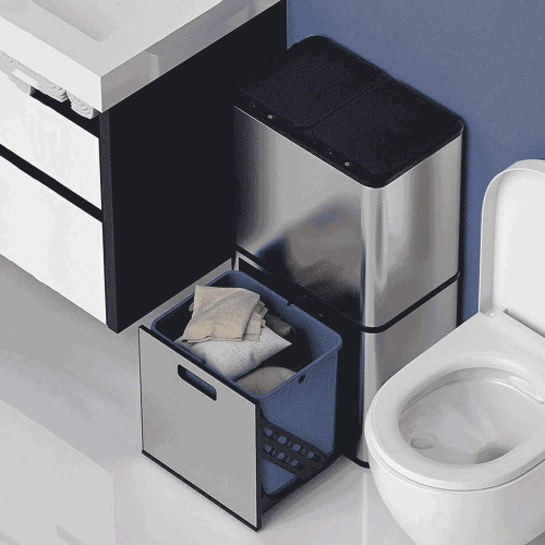 Hay una partición de partición en el centro del cubo inferior independiente, que se puede dividir en dos áreas, como un gabinete de almacenamiento, la polea inferior es conveniente para mover la papelera sin lastimar el piso.