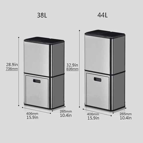 CHYSP Papelera de Basura de la Cocina de la Cocina eléctrica del hogar Elegante de Dos Niveles con Tapa de la Basura de la clasificación de la Voz de la Tapa del Acero Inoxidable (Size : 44l)