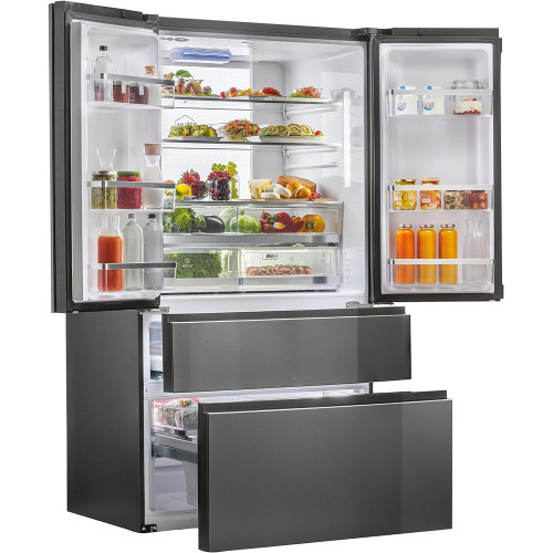 Haier FD 100 Series 7 HB26FSNAAA - Frigorífico, Puerta Francesa, Fabricación de Hielo Automática, Tecnología Antibacterias, Motor Inverter, Ancho 100cm, Capacidad XXL,Total No Frost, Titanium [Clase de eficiencia energética E]