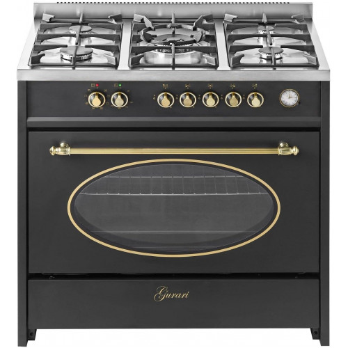Cocina de gas GURARI GCH E 914 BL r, retro, gas eléctrico, 90 cm,121 l, 8 funciones, aire caliente, grill, 5 quemadores, 4 kW, gas natural, gas propano, incl. adaptador WOK [Clase de eficiencia energética A]