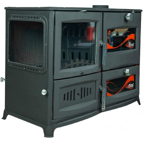 KAUFENET Estufa de 100% hierro fundido, estufa de leña, estufa con horno, gris oscuro, clase energética A [Clase de eficiencia energética A].