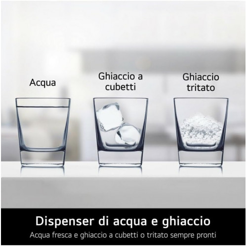 - DISPENSER DE AGUA Y HIELO: disfruta de bebidas siempre frescas gracias al dispensador que integra tanto el dispensador de agua fresca, como el para el hielo en cubitos o picado