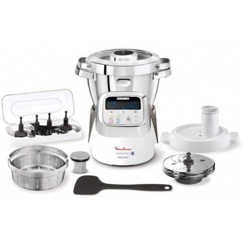Potencia: 1.550 W. Velocidad máxima de rotación del motor: 16.000 rpm. Número de velocidades: 13. Temperatura de cocción mínima: 30 °C. Temperatura máxima de cocción: 150 °C. Aumento de la temperatura de cocción: 5 °C. Rango de tiempo: 05-2:00 horas. Programas automáticos: sí. Número de funciones: 6. Tipo de funciones: salsa, sopa, amolada, vapor, pastelería, postre. Modo manual: sí. Parámetros ajustables: temperatura, duración, velocidad. Función pulse: sí. Función turbo: sí. Capacidad total del cuenco: 4,5 litros. Capacidad útil del cuenco: 3 L. Material del cuenco: acero inoxidable pulido. Accesorio para picar: hoja de acero inoxidable. Accesorio mezclador: sí. Accesorio para emulsionar: batidor Accesorio para amasar: sí. Accesorio de amasado. Detalles: cuchillo para amasar y triturar de acero inoxidable. Olla al vapor: sí, cesta de vapor interior de acero inoxidable. Espátula: sí. Otros: corte de verduras. Almacenamiento de accesorios: caja de almacenamiento. Ranura de cordón: sí. Apto para lavavajillas: sí. Apto para lavavajillas: cuenco, tapa, tapa y accesorios. Número de ingresos: > 650. Color: blanco/estaño. Dimensiones: 37,7 x 33,3 x 32,3 cm. Peso neto: 8,6 kg.