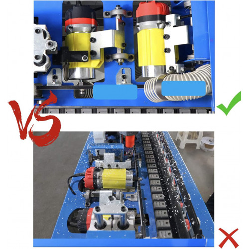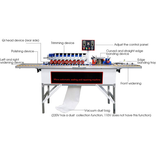Cinta transportadora automática: alimentación automática en la zona del dispositivo de corte y pulido. Bandas de borde aplicables: borde curvo / borde recto / forma anormal, esta máquina no puede reparar el borde inclinado. La máquina también debe usarse con una bomba de aire, cuanto mayor sea la potencia, mejor. El dispositivo de recorte está equipado con una aspiradora, pero solo para máquinas de 220 v, no 110 v