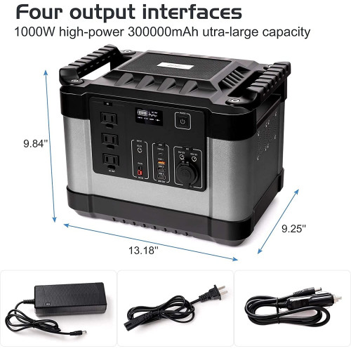 【LO QUE OBTIENE】: esta estación de energía con batería de litio está diseñada con dos manijas sólidas para energía de respaldo de emergencia en el hogar, y también es perfecta para acampar o en cualquier lugar donde necesite energía mientras viaja. Elementos incluidos: 1 estación de energía portátil de 1000 W, 1 adaptador de carga con cable, 1 puerto para automóvil a cable de CC, 1 guía del usuario.