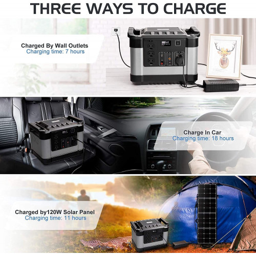 【Generador solar】: fuente de energía ecológica y limpia, este generador para exteriores se puede cargar con un panel solar de alta eficiencia de 120 W (se vende por separado). También hay disponibles otras opciones de carga flexibles, incluidos enchufes de pared, enchufes para automóviles y generadores.