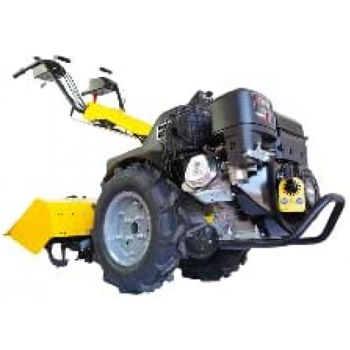 Esta maquina monta un motor OVH Briggs de 15 CV, 3 velocidades hacia delante y 3 velocidades hacia atrás, el manillar es totalmente reversible para adecuar a cualquier tipo de trabajo, además monta un filtro de aire de cartucho y espuma para un doble proceso de filtrado de gran capacidad, lleva un embrague sin ningún tipo de correa lo que le confiere menor mantenimiento y un trabajo mas profesional, además incorpora un bloqueo de diferencial para terrenos donde requiera una mayor capacidad de tracción.