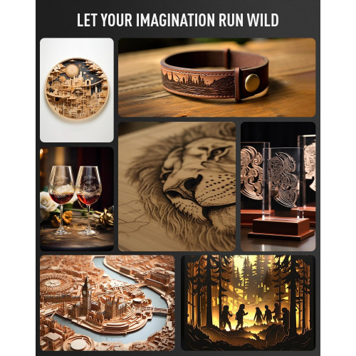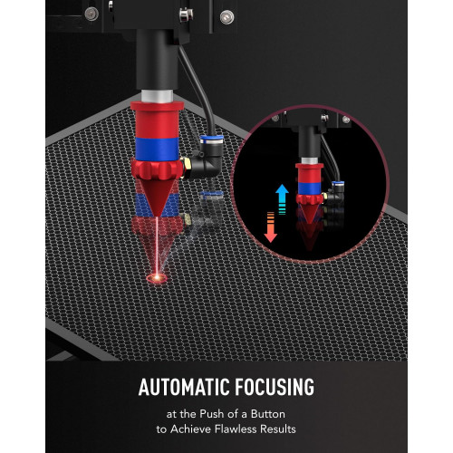 • Enfoque Automático: No más luchas con ajustes manuales o conjeturas. Las camas de trabajo de esta máquina de grabado láser se ajustan hacia arriba y hacia abajo con solo tocar un botón, y el enfoque automático preinstalado encontrará automáticamente la distancia focal correcta para ti.
