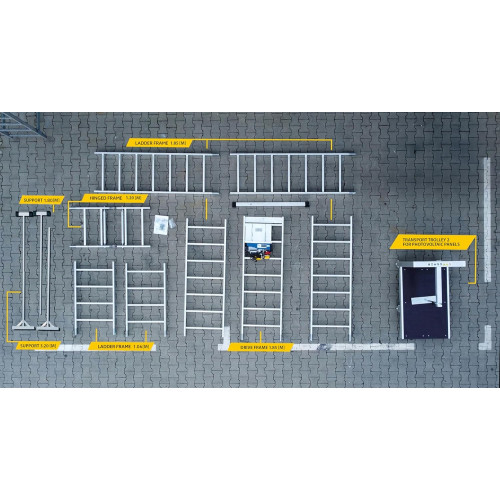 - Polipasto de escalera de aluminio liviano: Este cabrestante de escalera es una estructura de aluminio liviano con peldaños dentados, diseñado para ayudar en la instalación o mantenimiento de paneles solares. Ahora puede abordar proyectos solares de manera eficiente y sencilla.