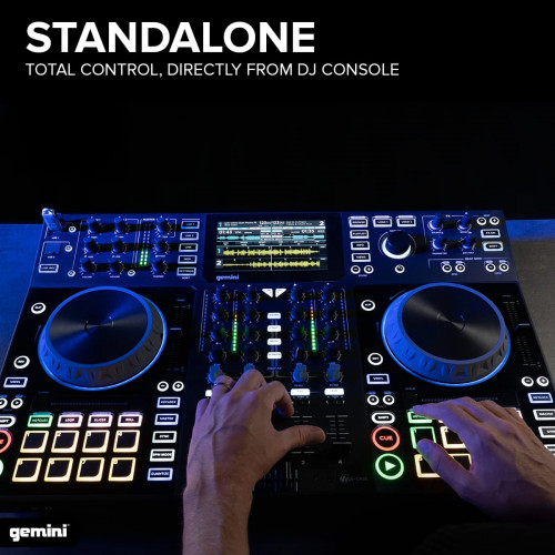 Gemini Sound SDJ-4000 DJ Equipment Console Table con 2 cubiertas, mezclador de audio de 4 canales, ruedas táctiles compatibles y pantalla HD de 7 pulgadas