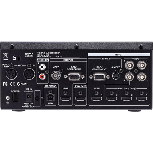 Vídeo y web streaming accesibles y de calidad? Con el V-4EX, la legendaria familia de los V-4 y V-8 ahora ofrece E/S HDMI, un tratamiento interno progresivo, la integración de audio, el streaming USB y una pantalla táctil integrada. La versatilidad del Roland V-4EX y sus características inigualables lo convierten en una opción ideal en una gran variedad de situaciones: clubes, conciertos, reuniones religiosas, eventos, reuniones, formaciones, bodas, enseñanzas y eventos deportivos. Características: 3 entradas (HDMI/compuesto) + 1 entrada (hasta 1080p HDMI/RGB/componentes/compuesto). Salida PGM (hasta 1080p HDMI + RGB/componentes + compuesto) + salida PVW (PVW/pantalla múltiple). Tratamiento interno progresivo 480p/576p? Pantalla táctil integrada con pantalla múltiple. Sincronizadores de imágenes (frames) para todas las entradas? Escalas para canal 4 y salida? 259 transiciones, 148 efectos. Compatible con HDCP. Integración del audio: Mezclador de audio y retraso. ¿Hasta 4 imágenes? Salida USB Streaming para transmisión por Internet.
