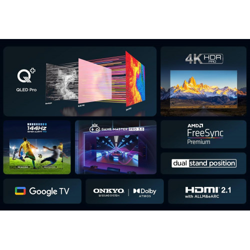 • 【GAME MASTER PRO 3.0】Juega como un Pro Para los gamers, un televisor con capacidad de respuesta es tan importante como uno con una imagen fluida y clara. Con HDMI 2.1, ALLM, 144Hz VRR y 120Hz VRR soportados, una barra de juego mejorada, FreeSync Premium y 240Hz Game Accelerator experimentarás la acción más fluida, la latencia más baja y los mejores ajustes de imagen para jugar, automáticamente.