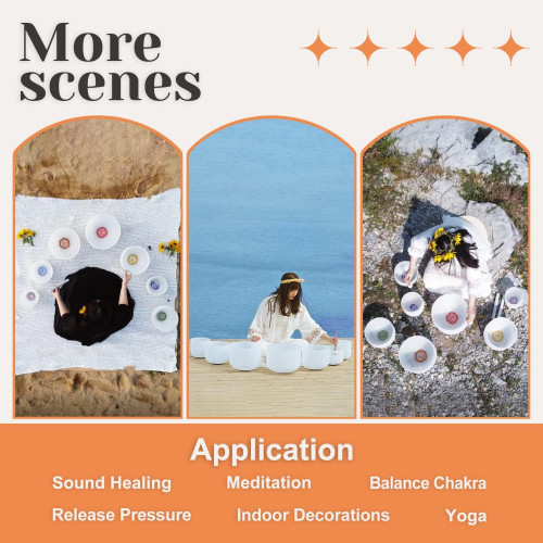 - Aplicación: sanación de sonido y meditación, oración, budista, yoga, reducción del estrés, equilibrio del chakra corporal, ajuste de nuestro estado emocional, etc