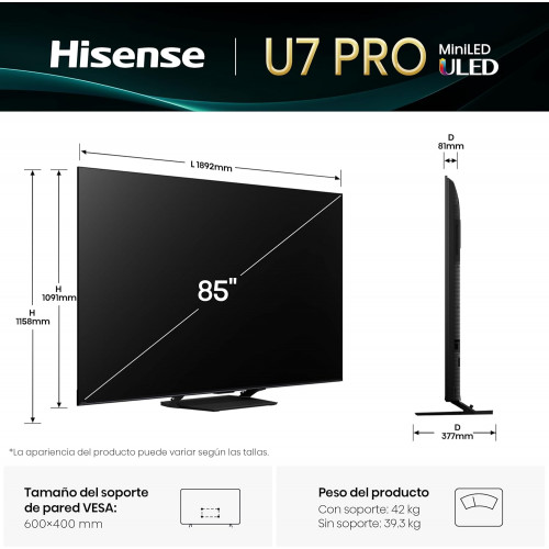 - Código de Producto: Smart TV 85U7Q Pro Mini LED Pro